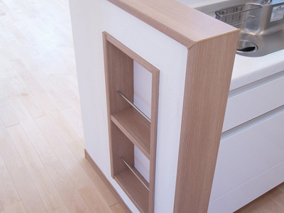 「内覧会のお家のような本用のニッチが欲しいんです…」 奥様からご要望があったキッチン横のニッチです。レシピ本を入れたり、新聞やリモコンを入れたりできます。 奥様に大人気のニッチです。 参考: 『使う部屋から使う量で考えた収納計画。』 東淀川区豊里6丁目O-HOUSE ※MJHOUSEの施工例です。 |