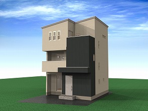 | ベージュ系の外観で制作したイメージパース。 | アクセントカラーを変更したパターン。 |