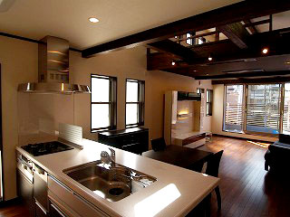 | 大収納の6畳のロフト 少しでもイメージに近づくように梁の仕上げにもこだわりました。現場監督3人と設計担当の石川マネージャーとで夜中まで塗装したりと、なにかとこだわりのロフトです。 |