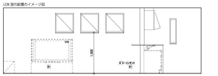 ¤Þ¤ºÀ¾¤Îƻϩ¦¤ÎÊÉ(¥À¥¤¥Ë¥ó¥°¤È¥ê¥Ó¥ó¥°¤Î´Ö¤Î°ÌÃÖ)¤Ë70cm»ÍÊý¤ÎÀµÊý·Á¤ÎÁë¤ò3¤Äʤ٤ÆÇÛÃÖ¡£