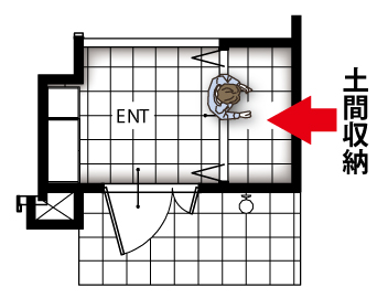 T様の持ち物をお聞きした時にゴルフバック、バーベキューセット、レインコートなどがありました。そこで、最近MJHOUSEで大人気の土間収納をご提案。積極的に内覧会にご参加頂いていたので、土間収納を直接ご覧頂き、是非取り入れたいと採用!最近、この土間収納が本当に人気があるんです。