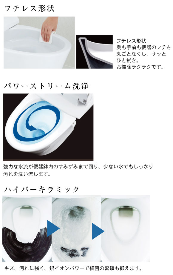 シンプルなデザイン&お掃除ラクラクで、エコロジーな節水・節電タイプです。